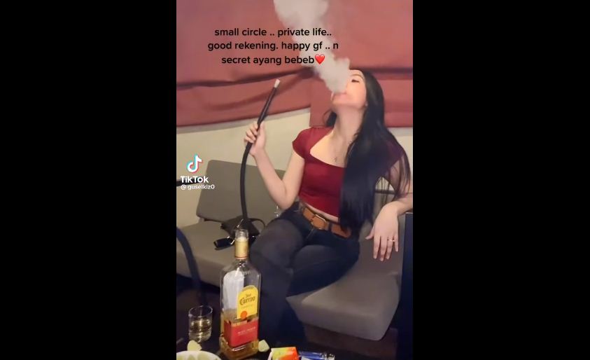 Setelah sejumlah vidio sebelumnya, termasuk sedang isapan bibir dengan cowoknya, datang lagi vidio perempuan muda tersebut sedang isap vape di sebuah bar.